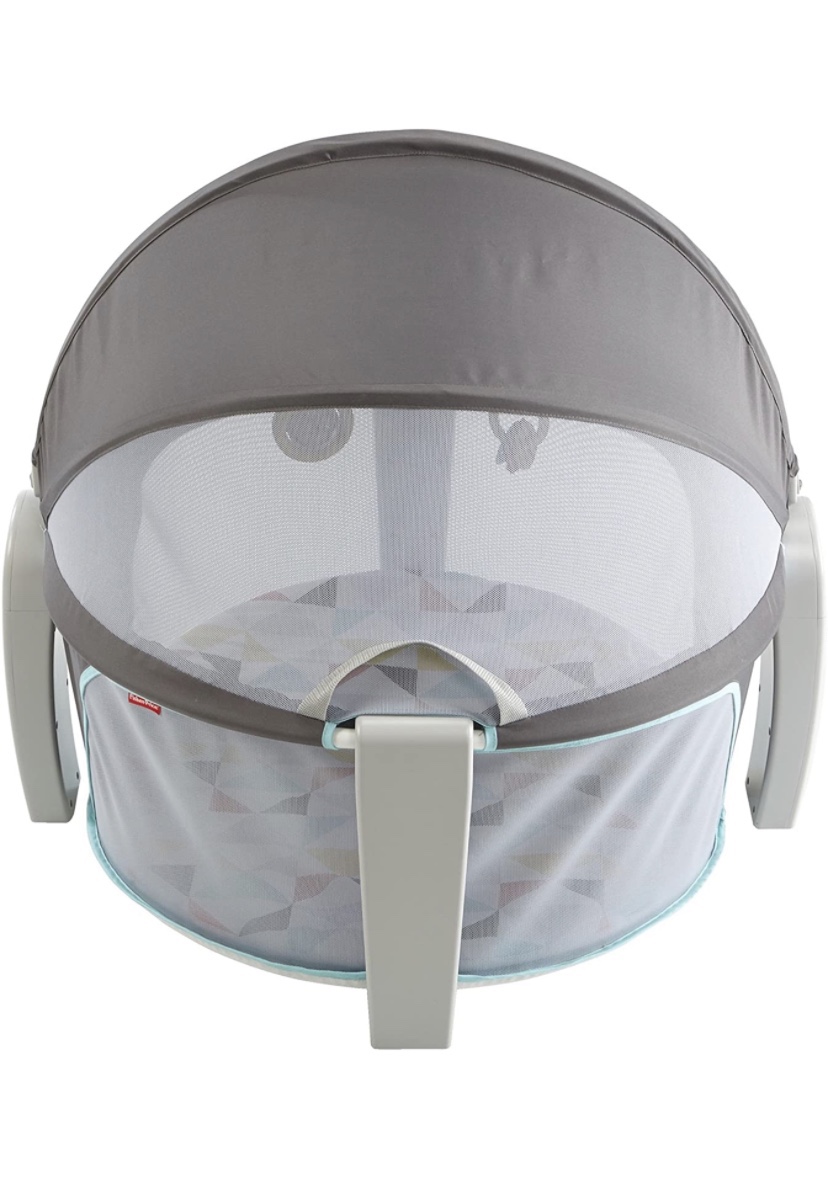 This is a picture of the cover up. As you can see itâs part mesh so itâs breezy and the other half is solid to protect from the sun. With the toys above, itâs the perfect place for a baby in a beach setting.